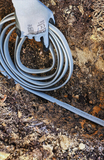 We connect new properties to the electricity network using underground service cables from the nearest pillar or pit. Includes trenching, conduit, and terminations.